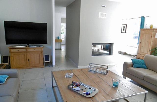 Entrée, espace de vie de 42 m² avec cuisine ouverte, quatre chambres (14, 10, 10 et 10 m²), placards, salle d'eau, salle de bains et deux WC.