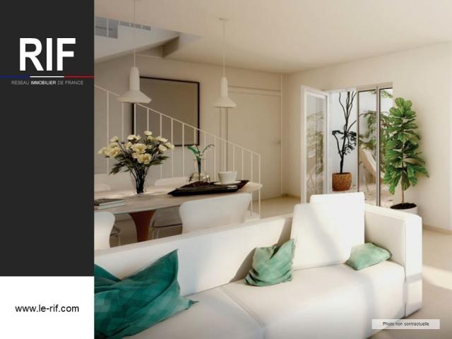 Duplex, lumineuse, séjour avec double hauteur sous plafond, piscine et jardin collectifs, dernières normes thermiques et phoniques.