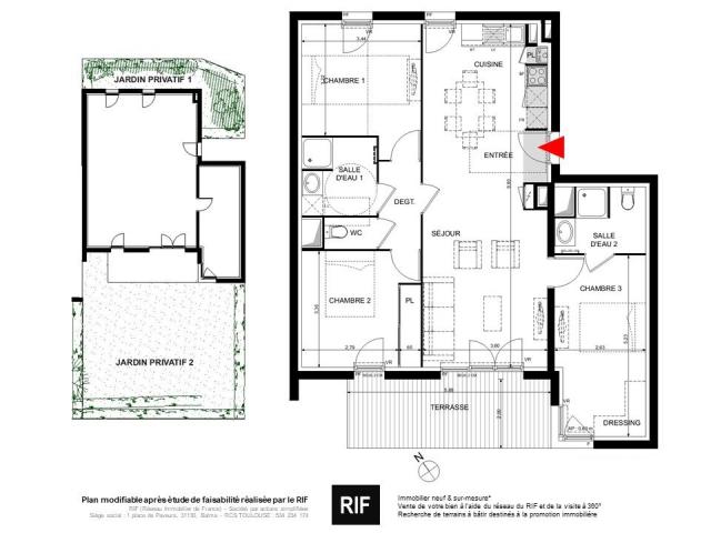 Particularités : séjour lumineux, bien agencé, résidence contemporaine, dernières normes thermiques et phoniques.
