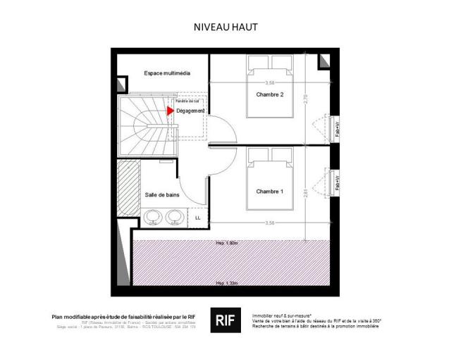 Particularités : espace de vie de 33 m², cuisine ouverte, chambre parentale, grande chambre, rangements, domotique, dernières normes thermiques et phoniques.