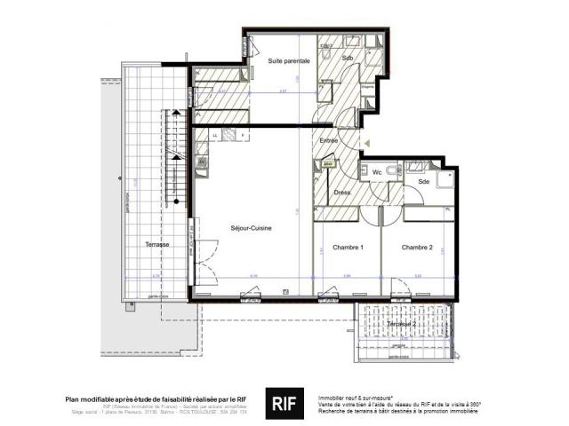 Un appartement 3 pièces de 68 m² habitables.