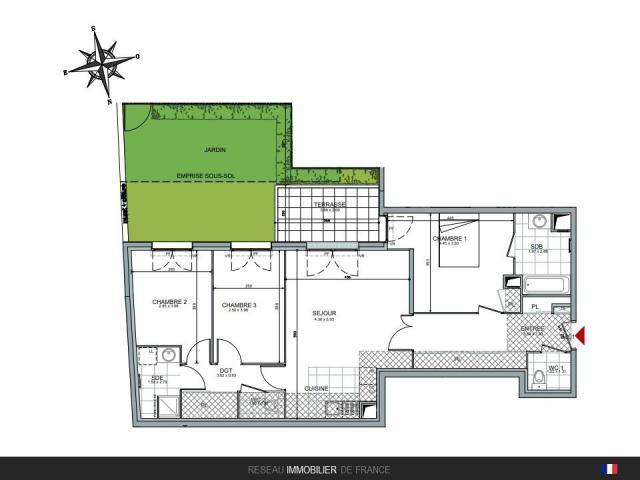T3 de 63 m² avec terrasse 15 m²